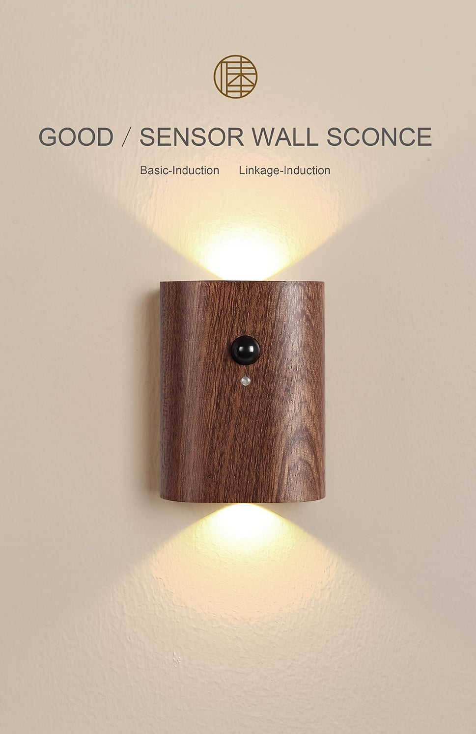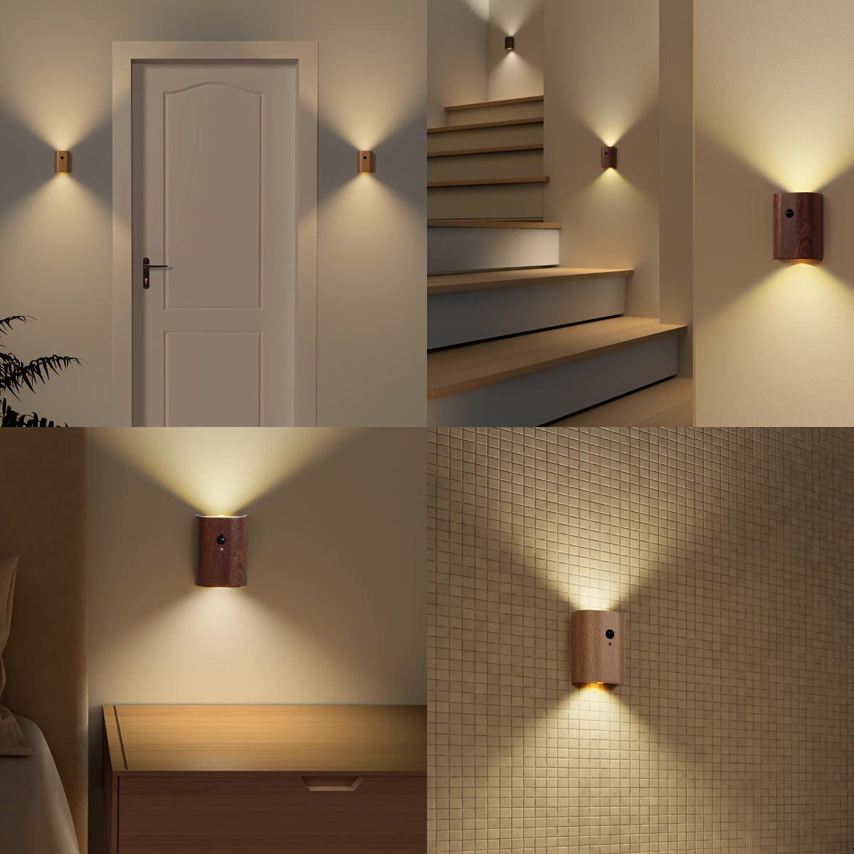 מנורת קיר חכמה עם חיישן תנועה (USB-C נטען) — אור חם למעלה ולמטה