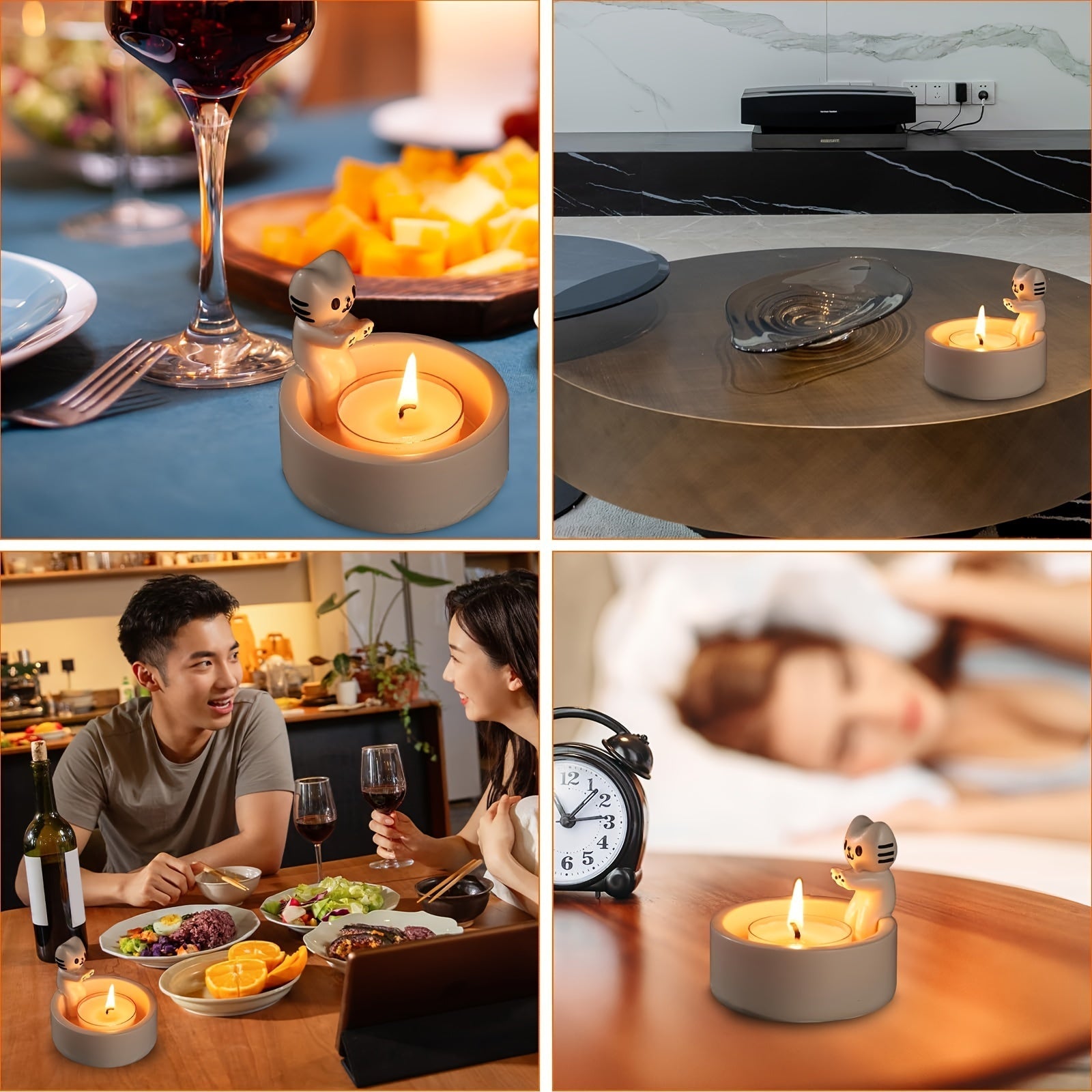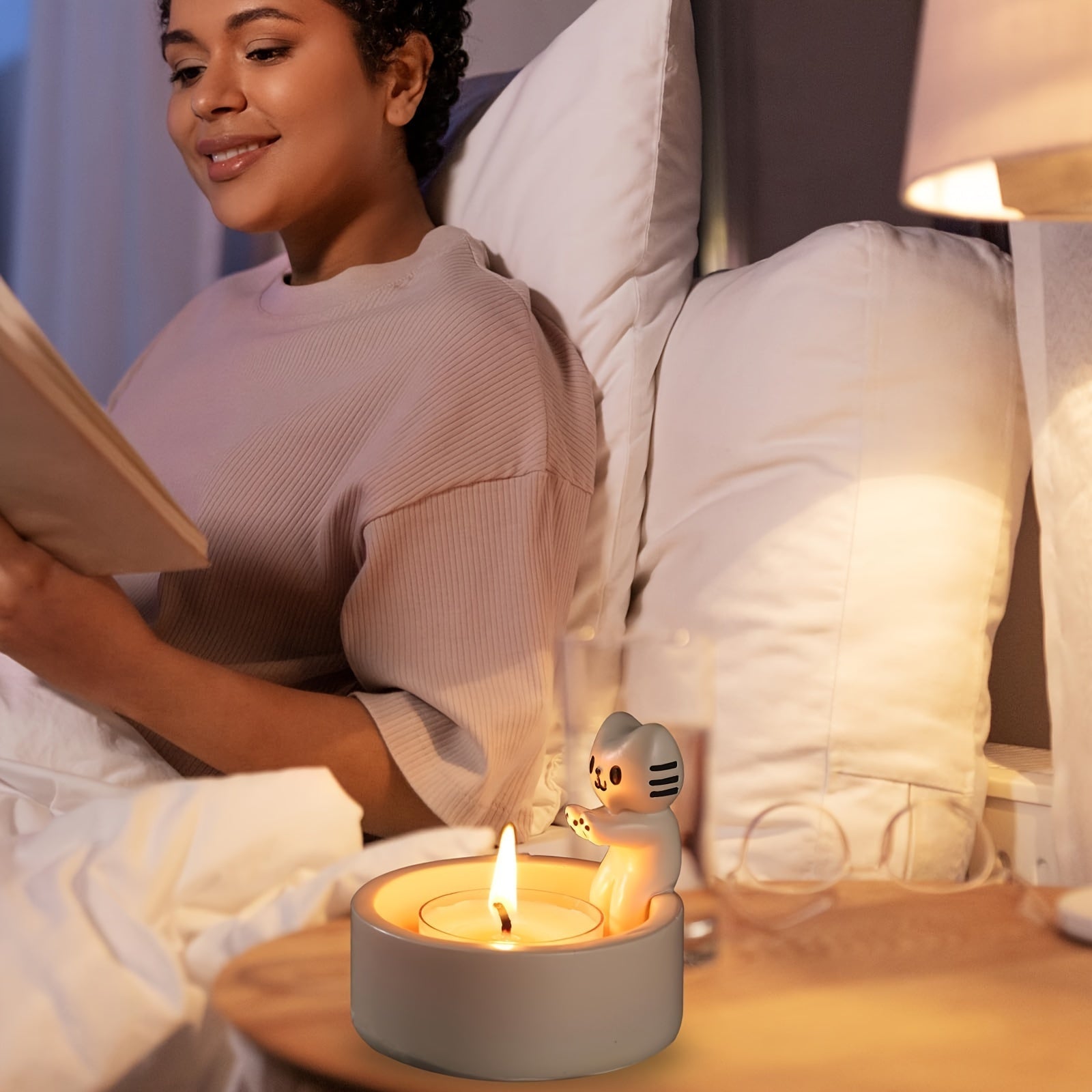 חתול קטן שיושב ליד נר תה ומפיץ אווירת חיבוק בחדר. מתאים לפינת קריאה, למדף בסלון או כמתנה מושלמת לאוהבי חתולים. נר/ים להמחשה – לא כלולים.