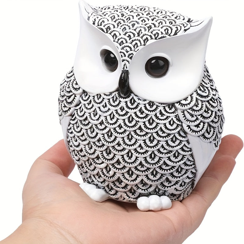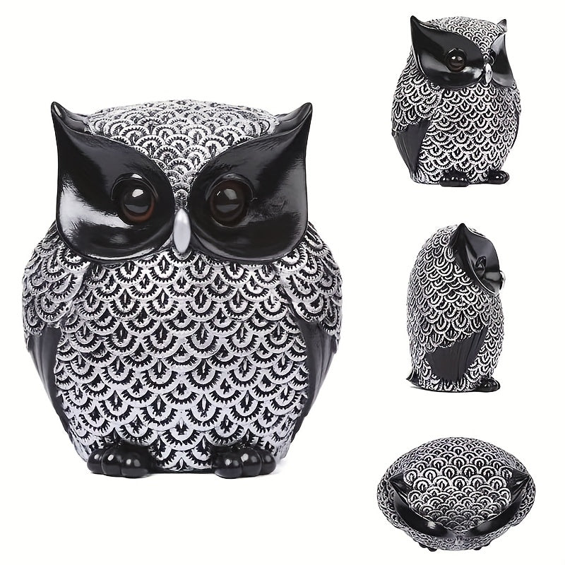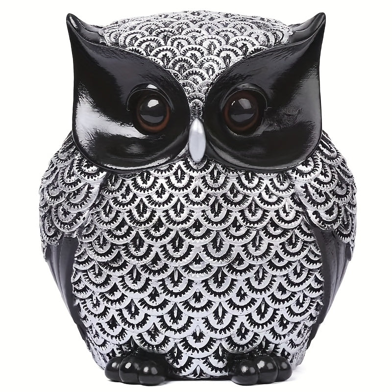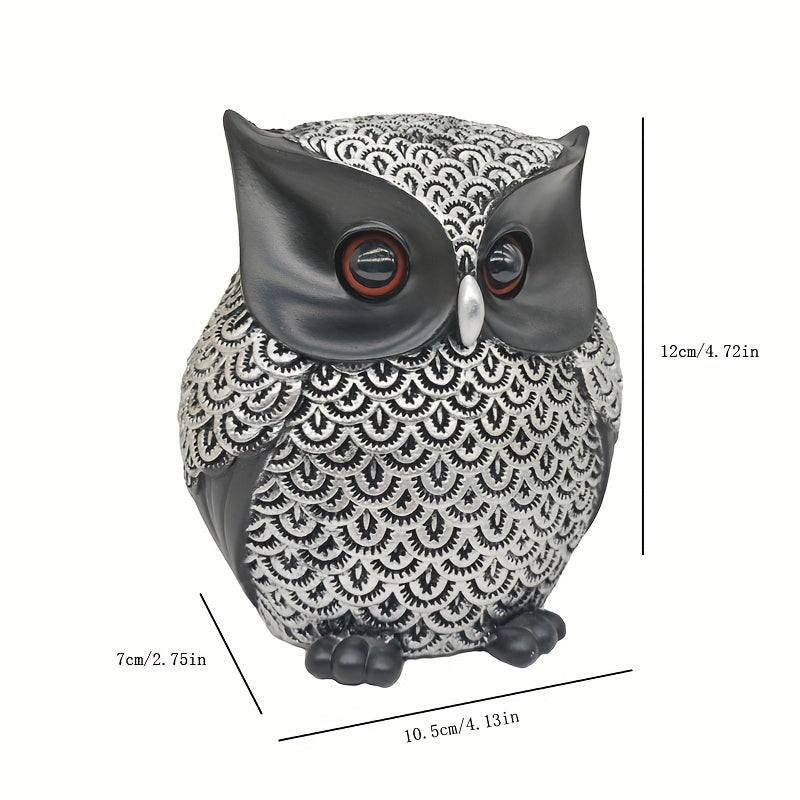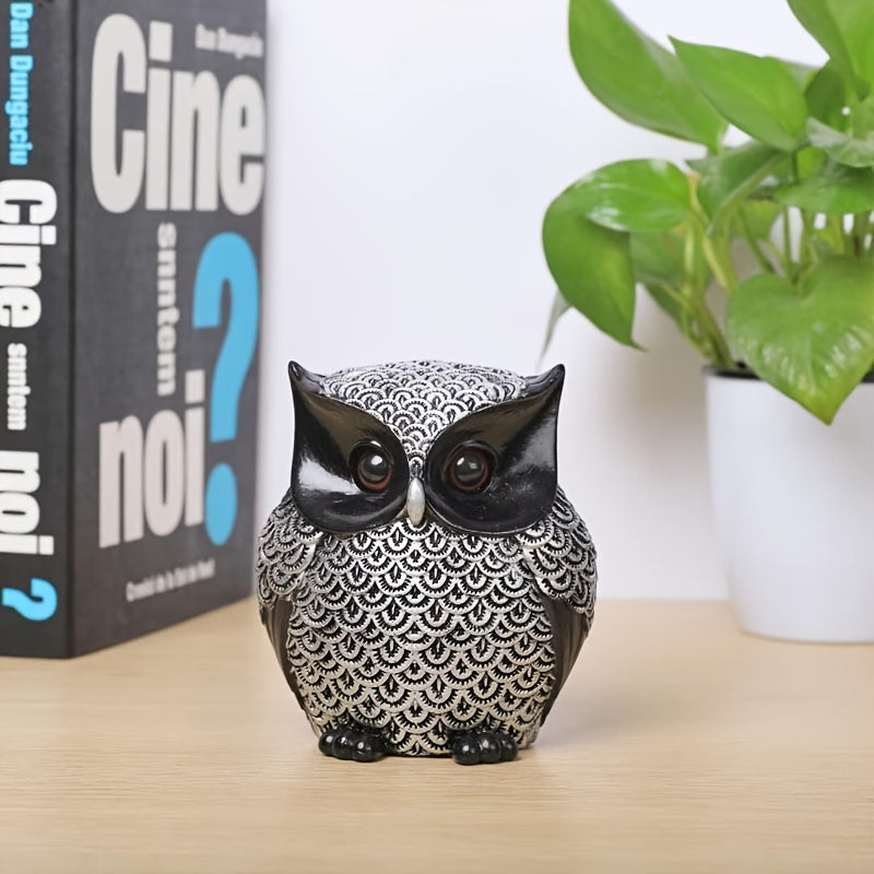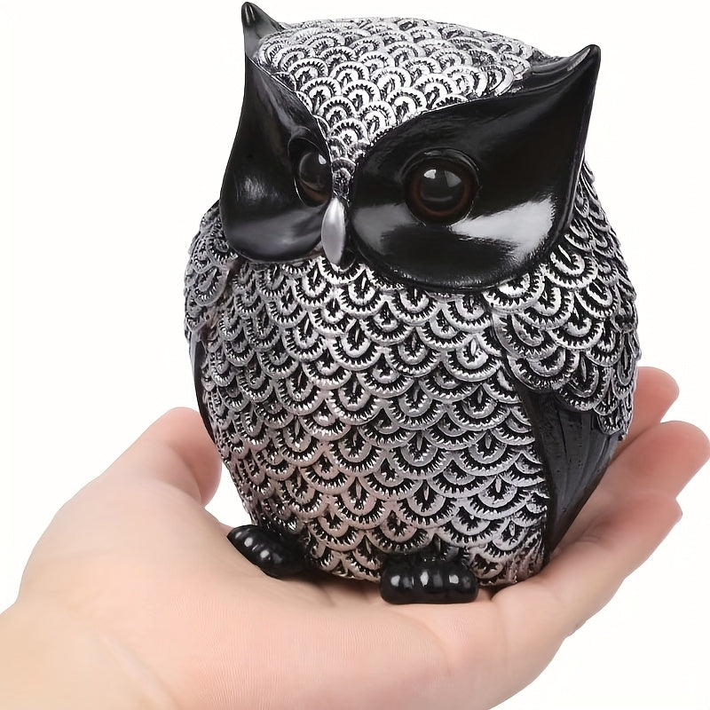 ינשוף דקורטיבי עשוי שרף, טקסטורה מפוסלת עשירה ועיניים מבריקות שמושכות מבטים. נכנס בול על מדף, אדן חלון או שידת כניסה – מתנה קטנה שמרגישה גדולה.