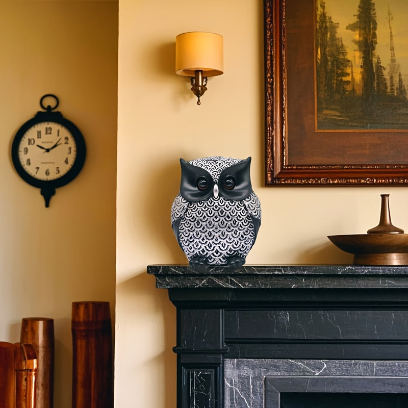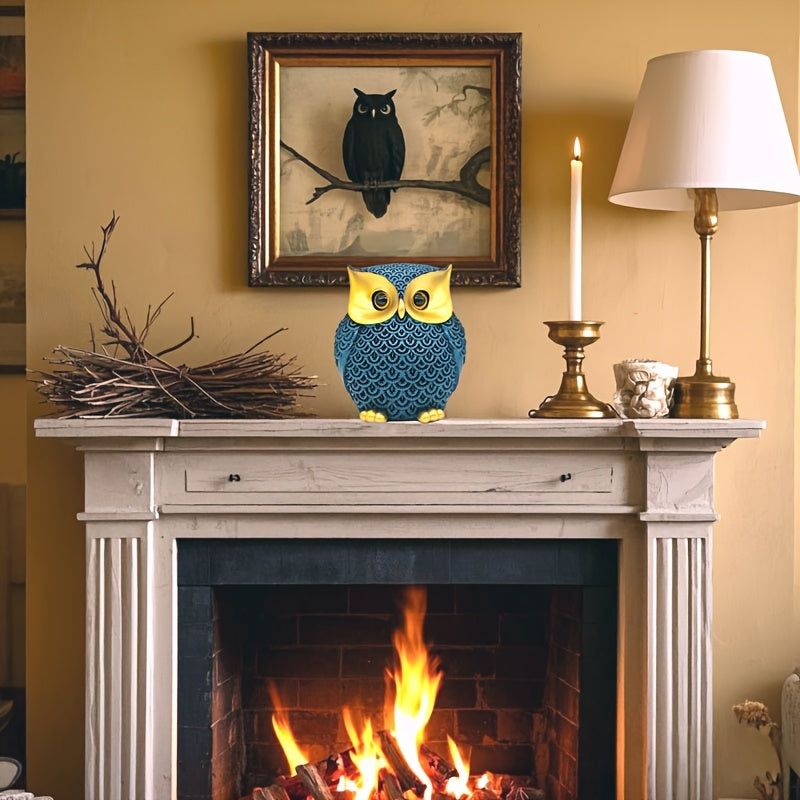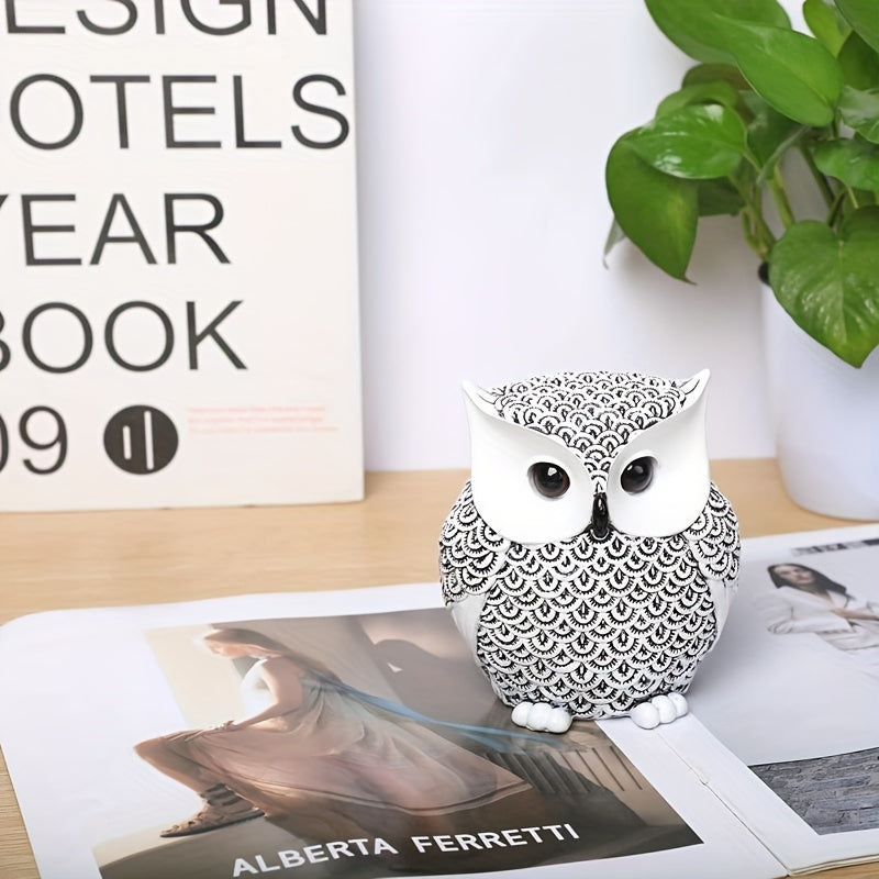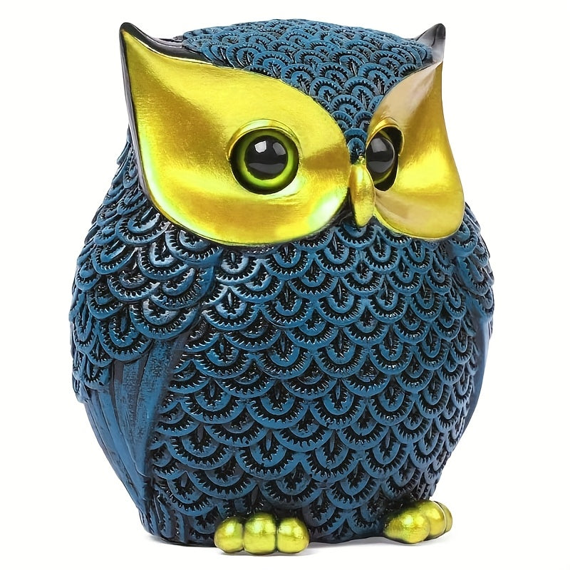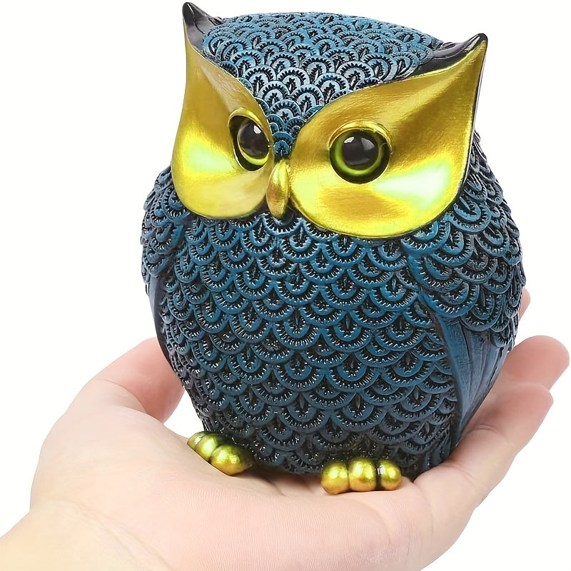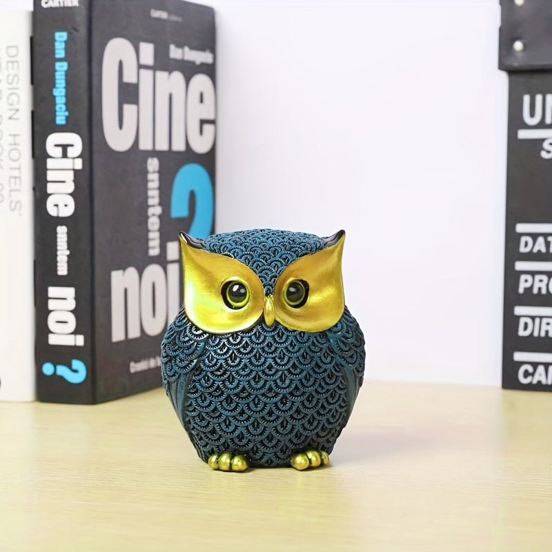 ינשוף דקורטיבי עשוי שרף, טקסטורה מפוסלת עשירה ועיניים מבריקות שמושכות מבטים. נכנס בול על מדף, אדן חלון או שידת כניסה – מתנה קטנה שמרגישה גדולה.