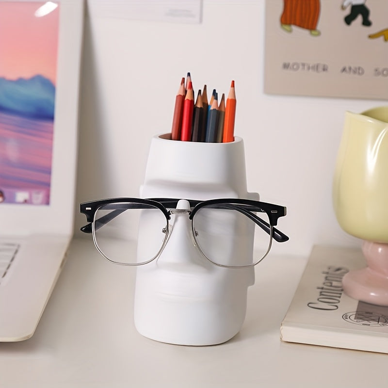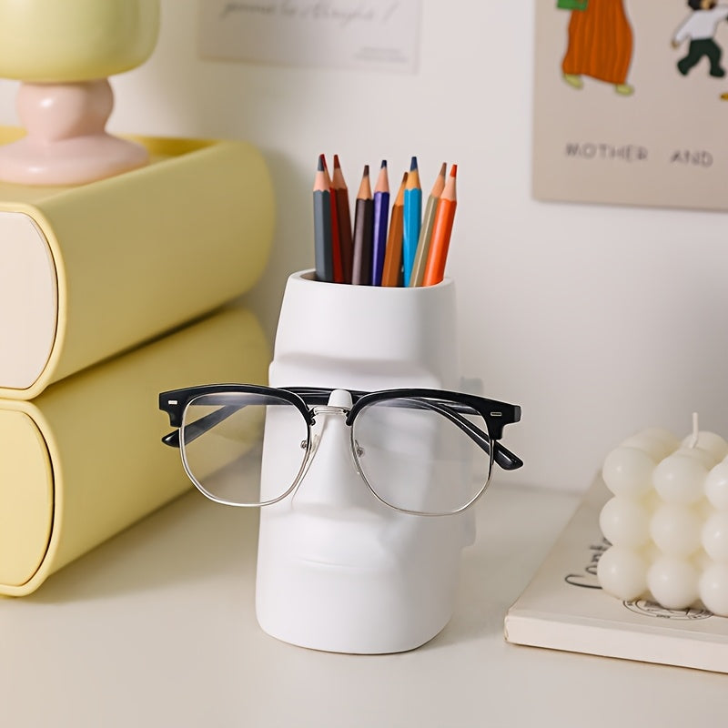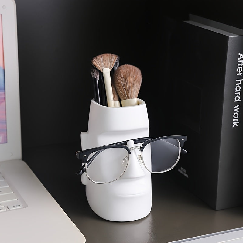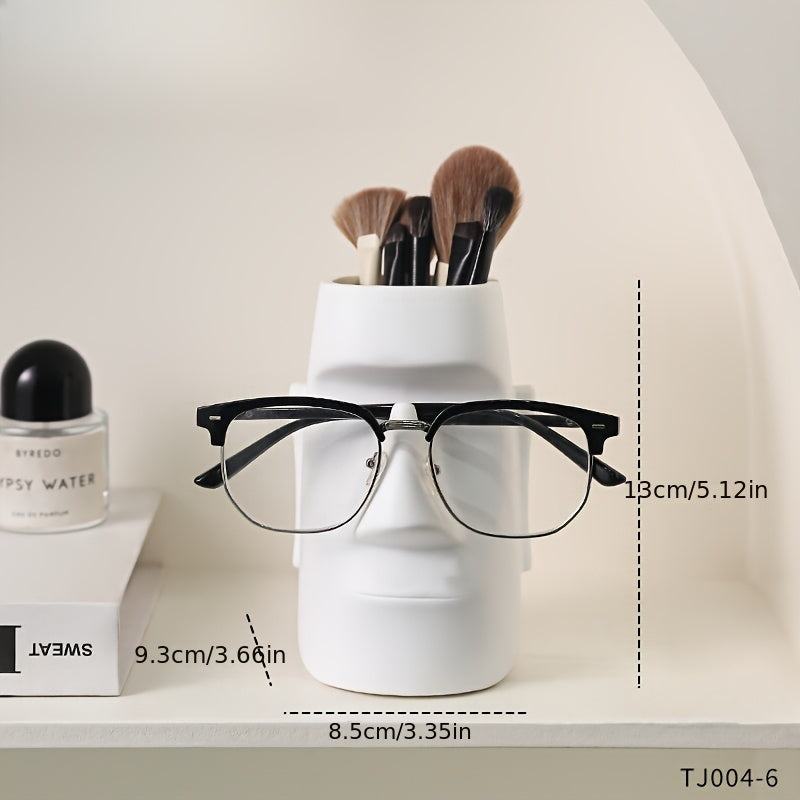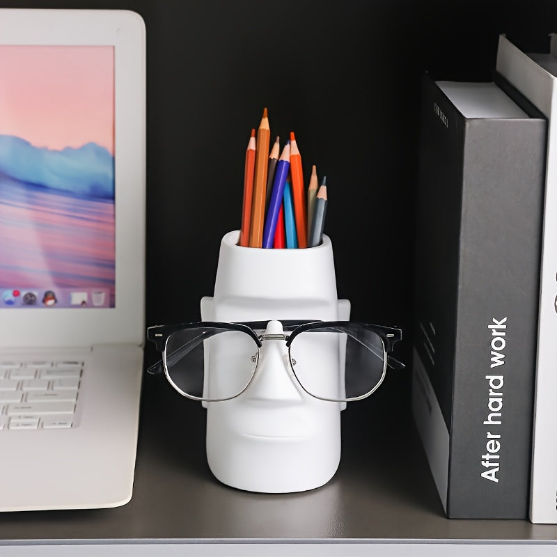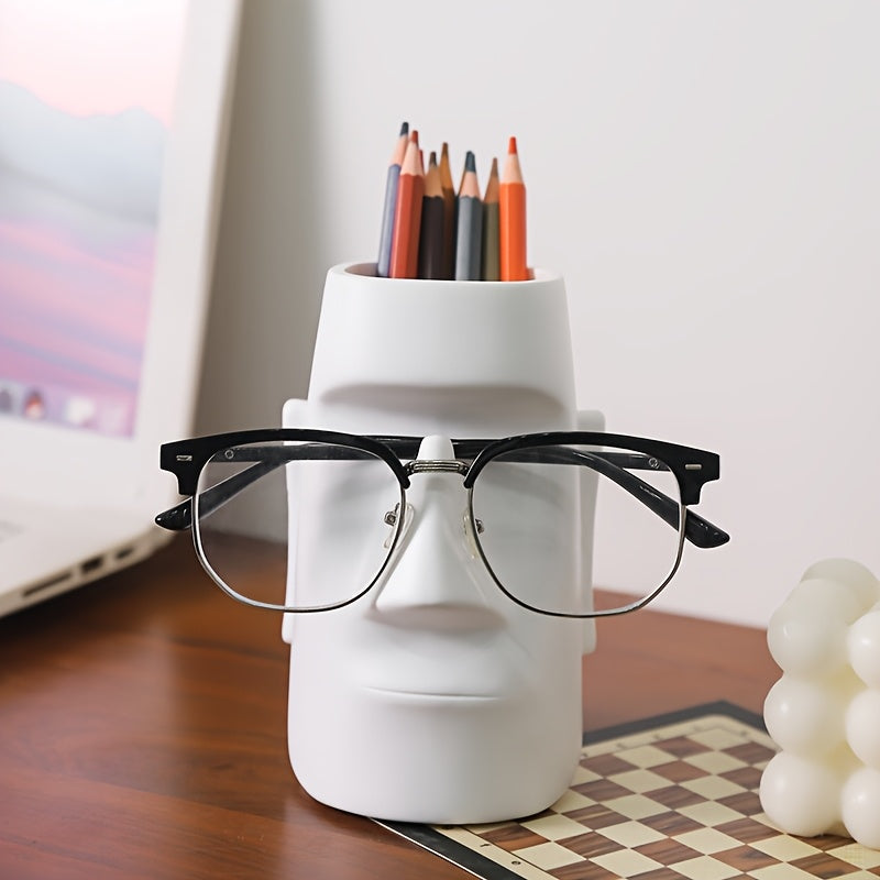 פסל מואי רב-תכליתי — מעמד למשקפיים + מחזיק מברשות/עפרונות + ואזה קטנה