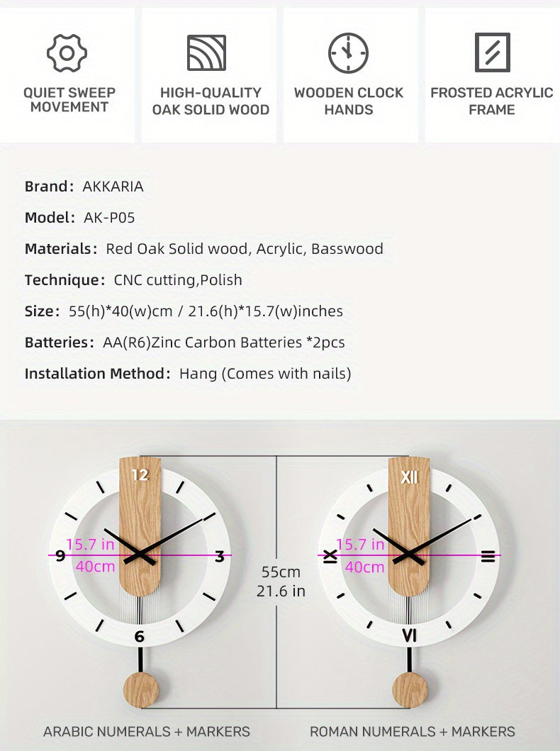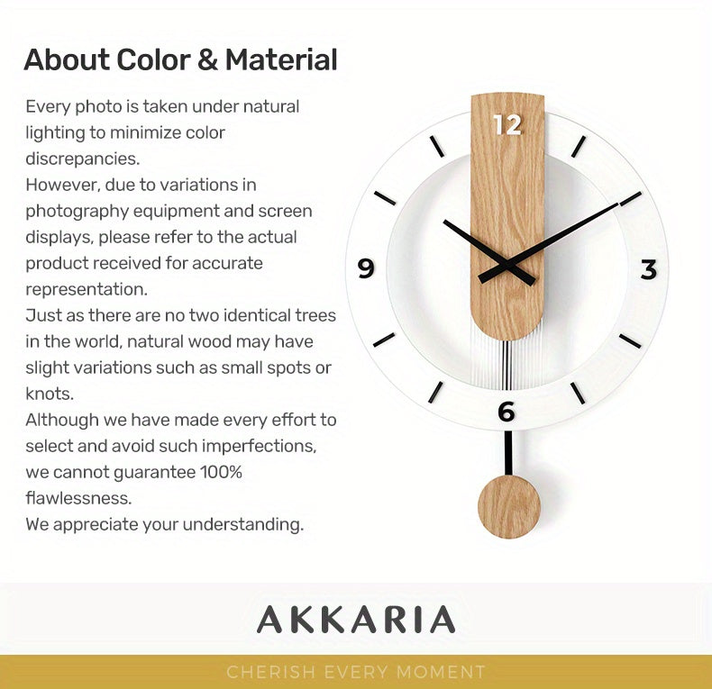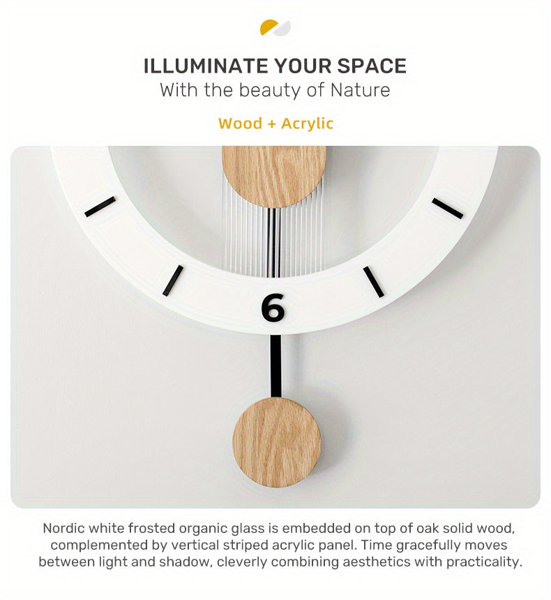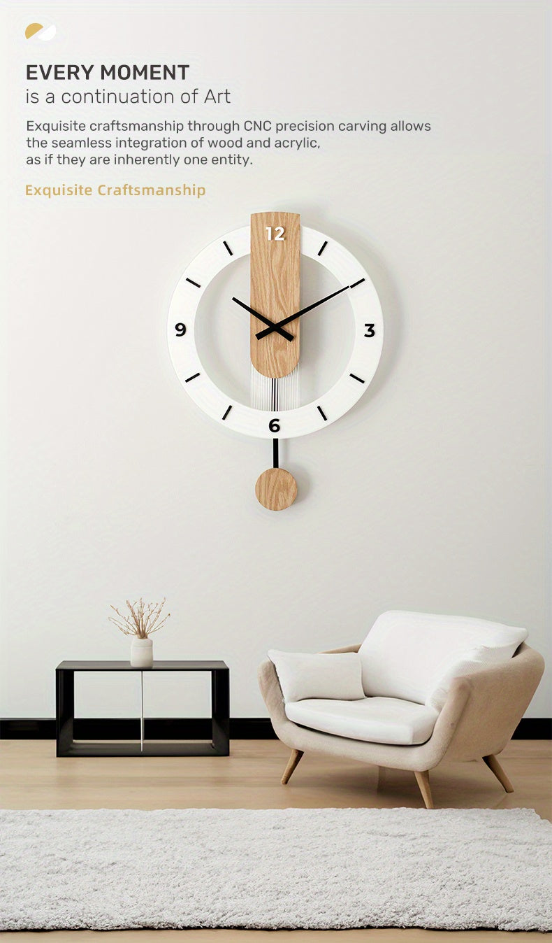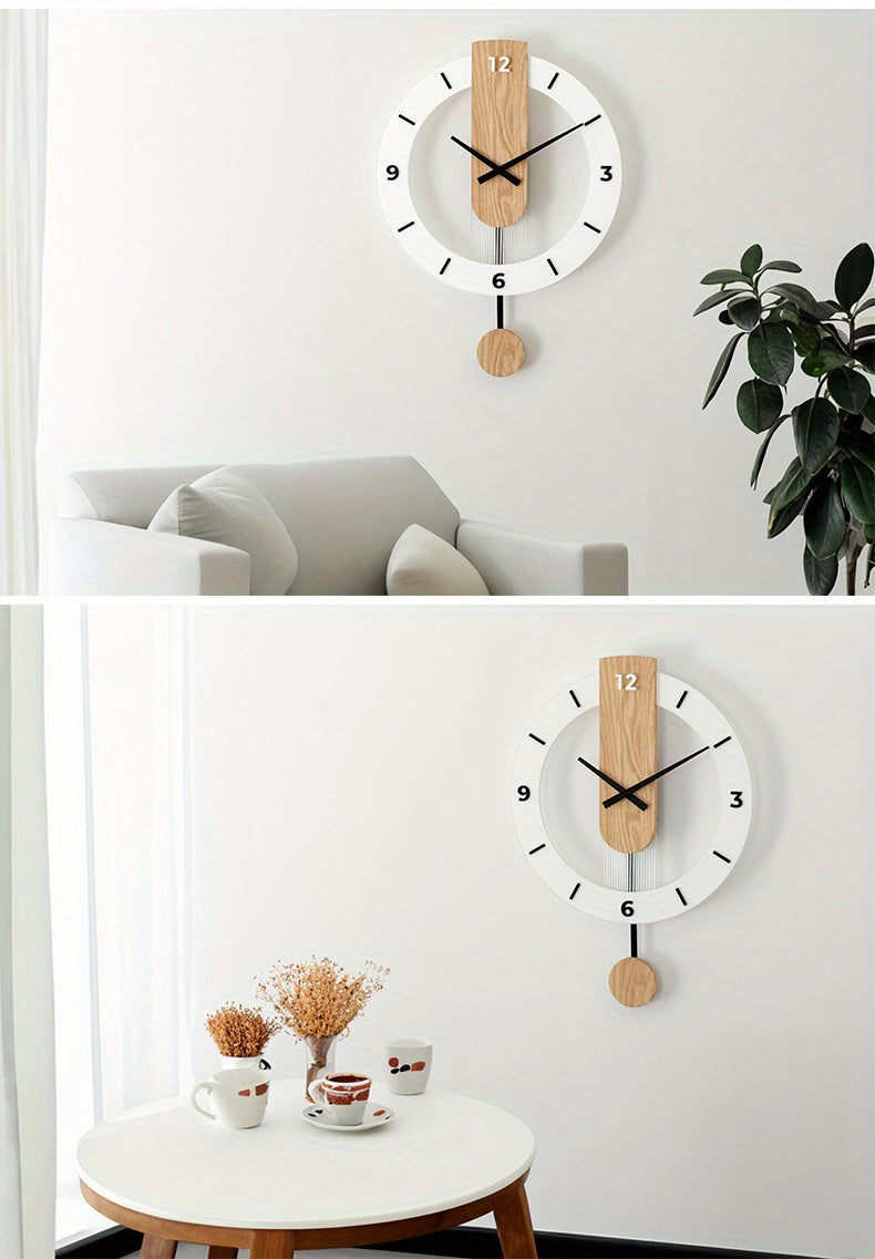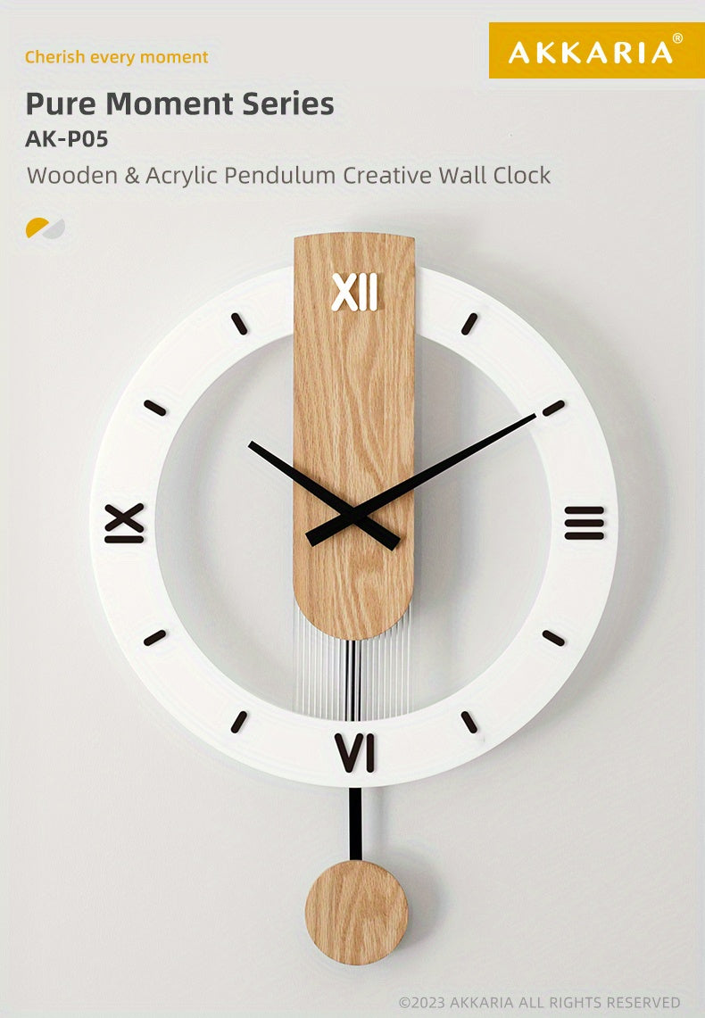 שעון קיר מטוטלת עץ-אקרילי — שקט, מודרני, בלי רעש