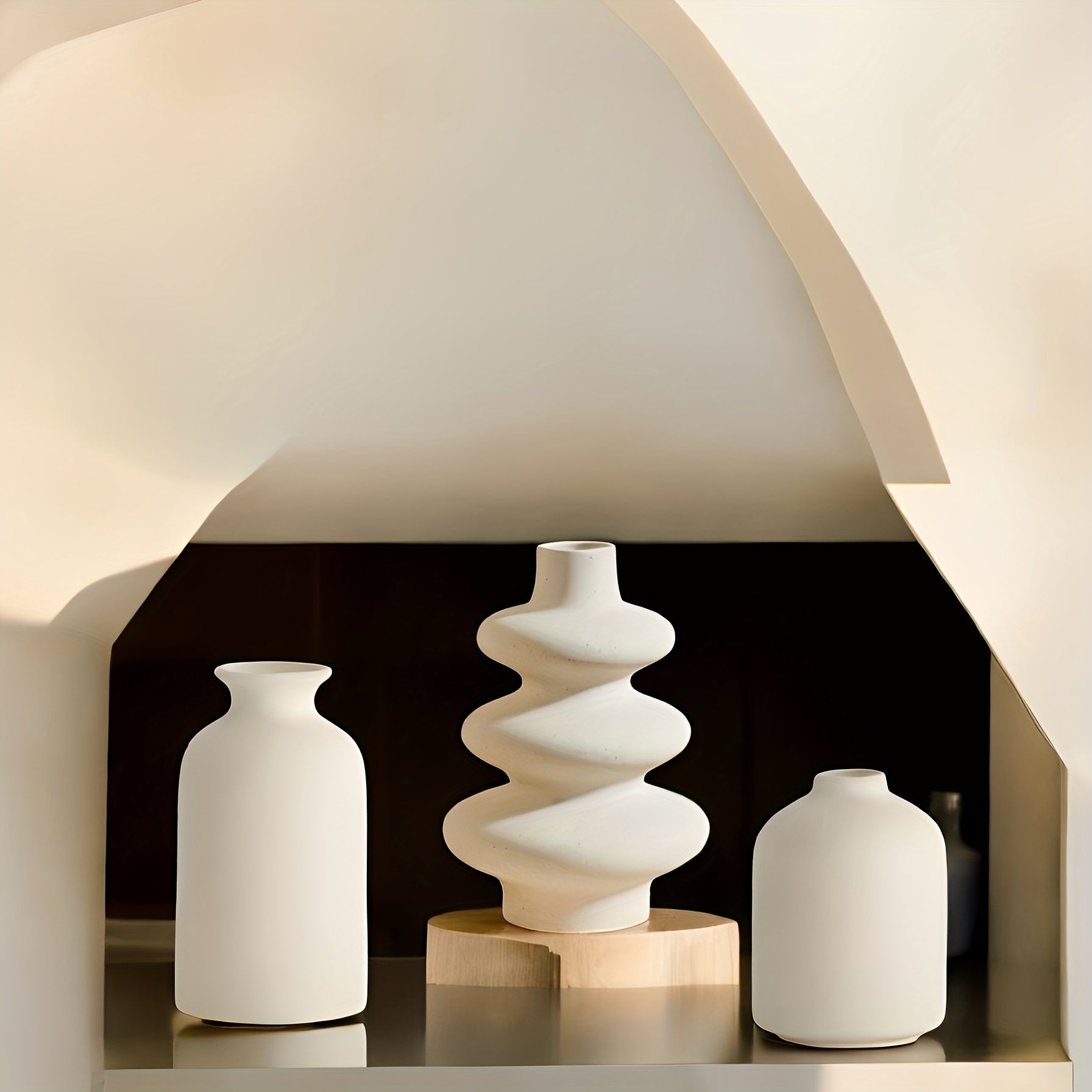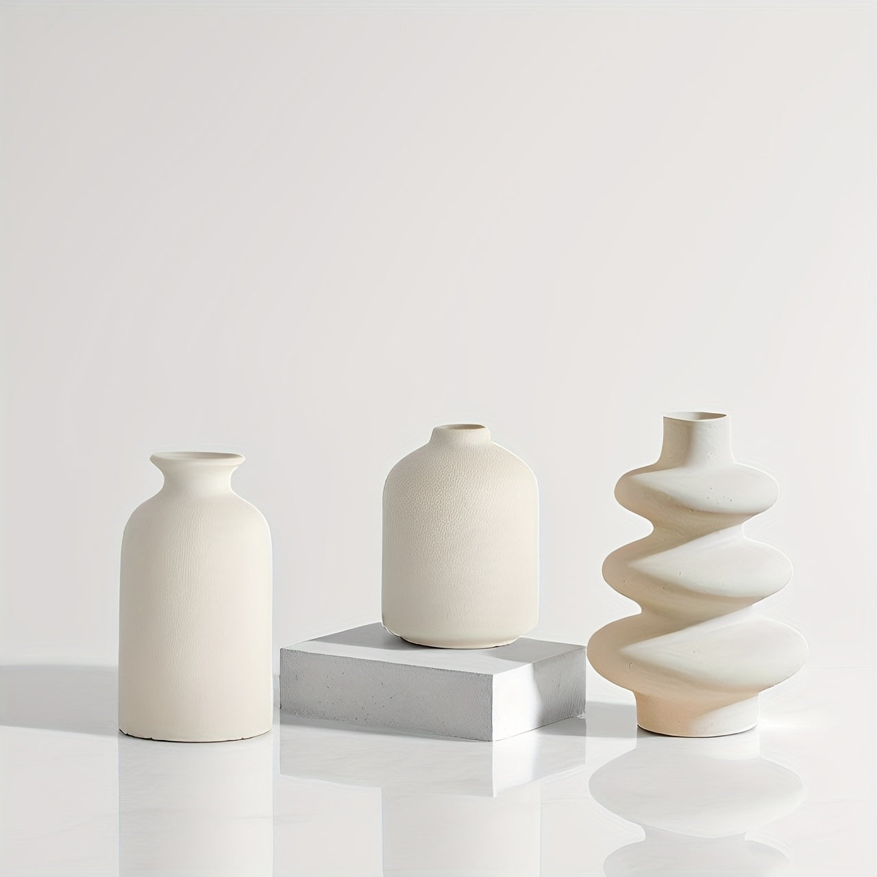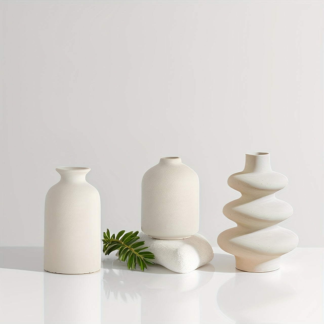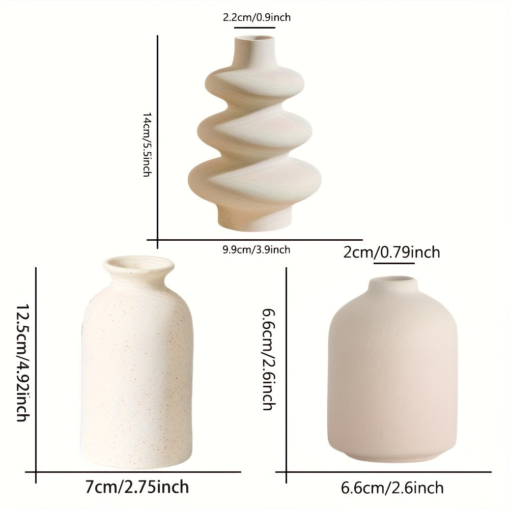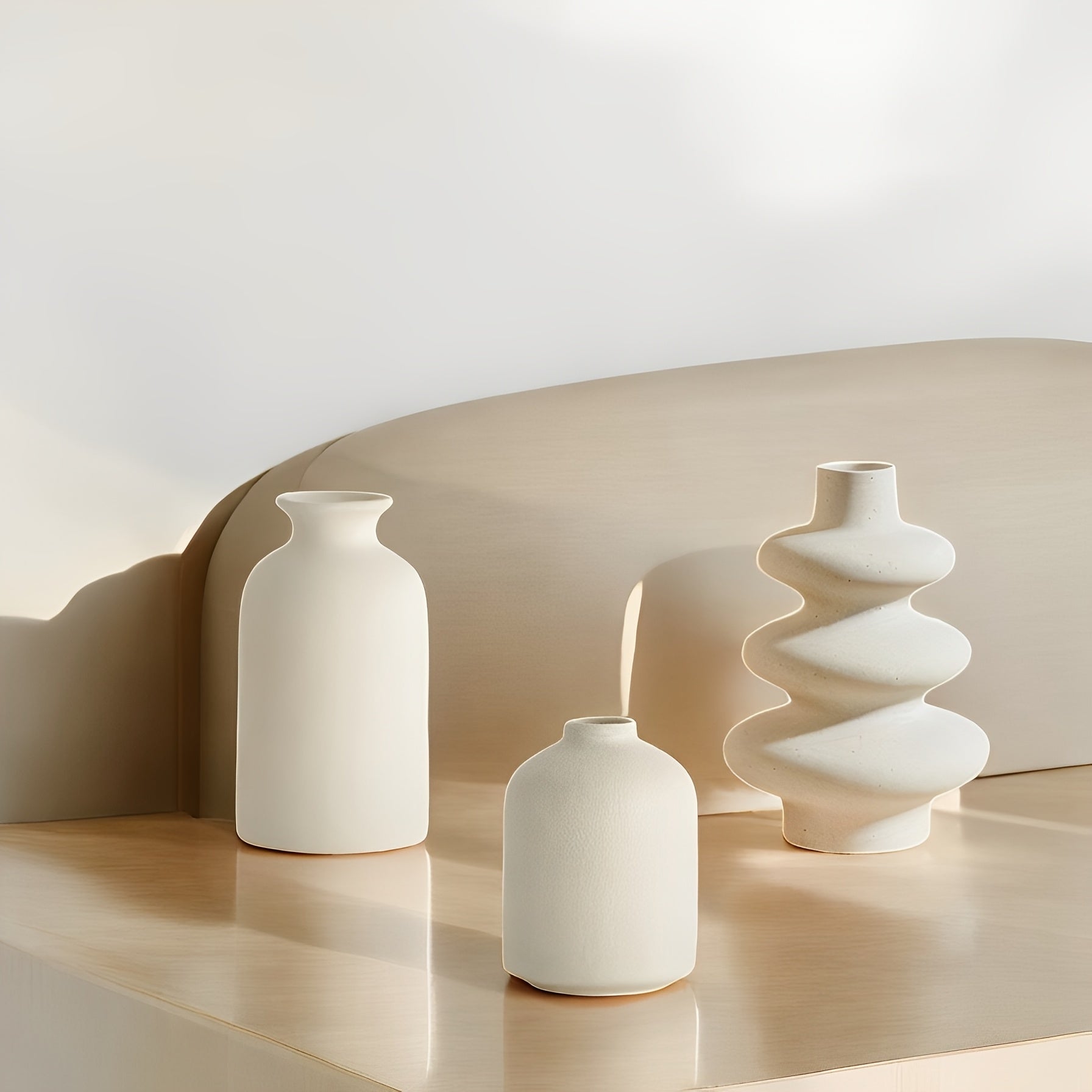 סט 3 אגרטלי קרמיקה – בוהו מינימליסטי, לבן טבעי