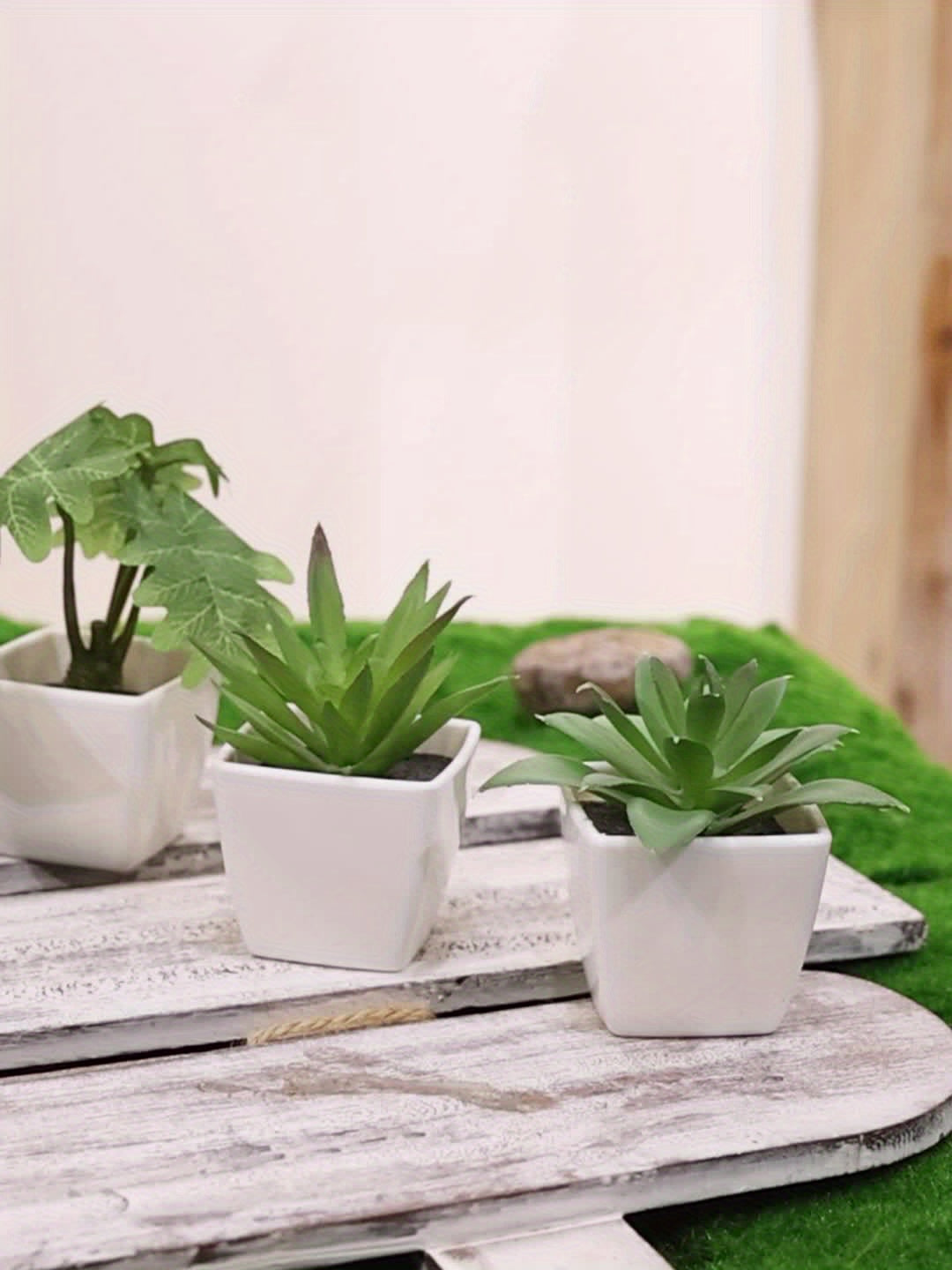 שישה צמחי דקור מינימליסטיים עם עציצים לבנים תואמים — מושלמים למדפים, שולחנות עבודה ופינות קטנות בבית. נראה טבעי, לא מצהיב, ולא צריך טיפה של מים. כולל הכלים/עציצים. :contentReference[oaicite:1]{index=1}