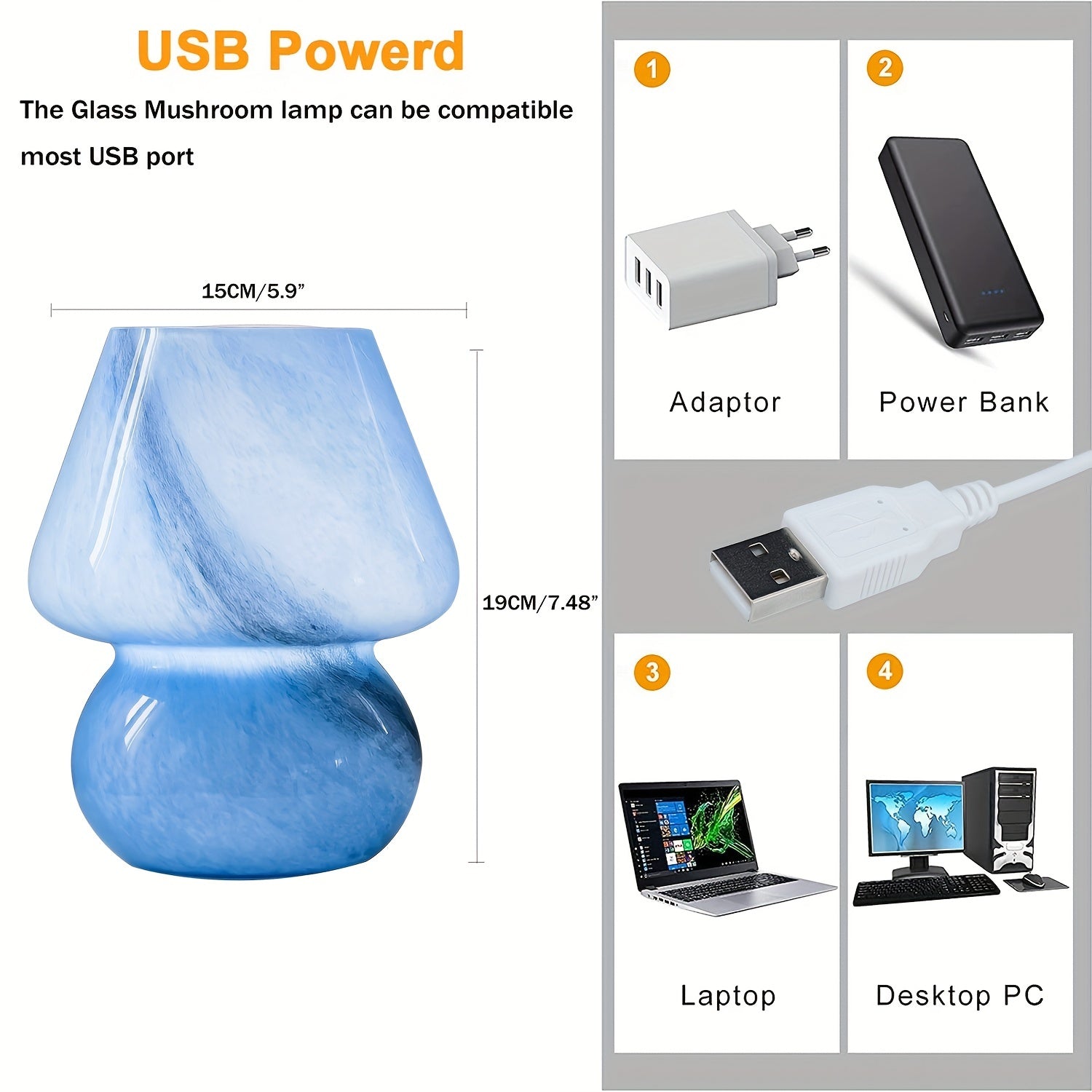 מתאם קיר מומלץ: 5V/1A–2A. בחירת גוון: לבן חלבי / כחול עדין / ענבר חם.*