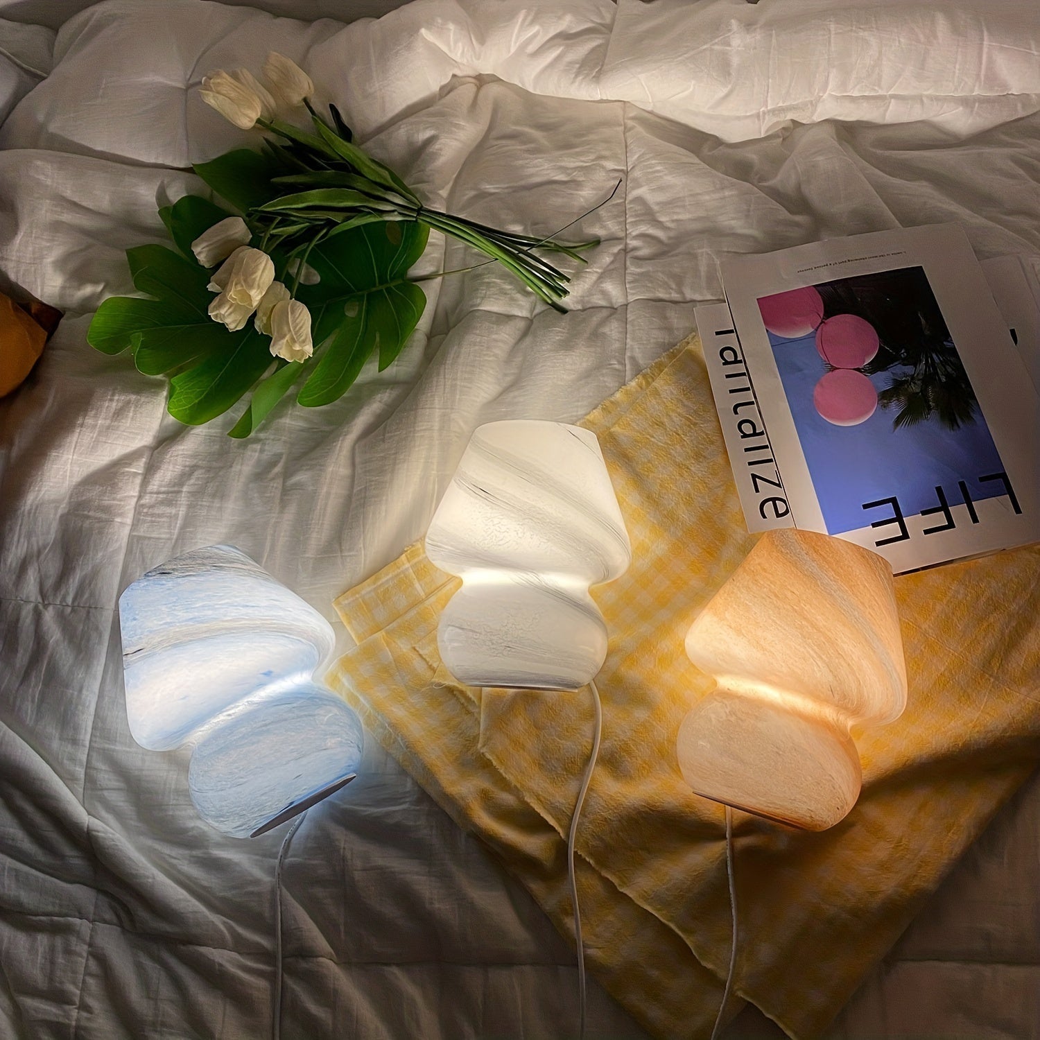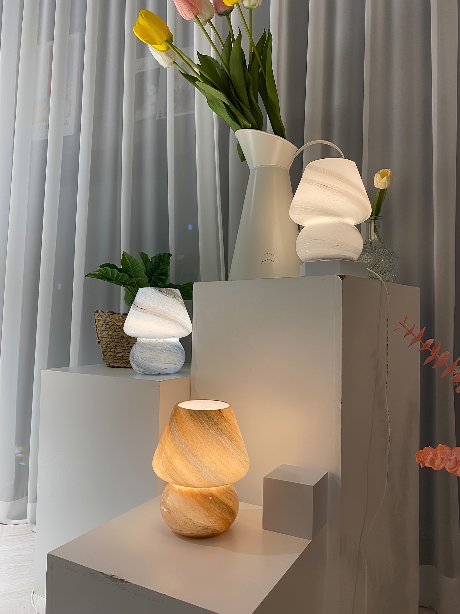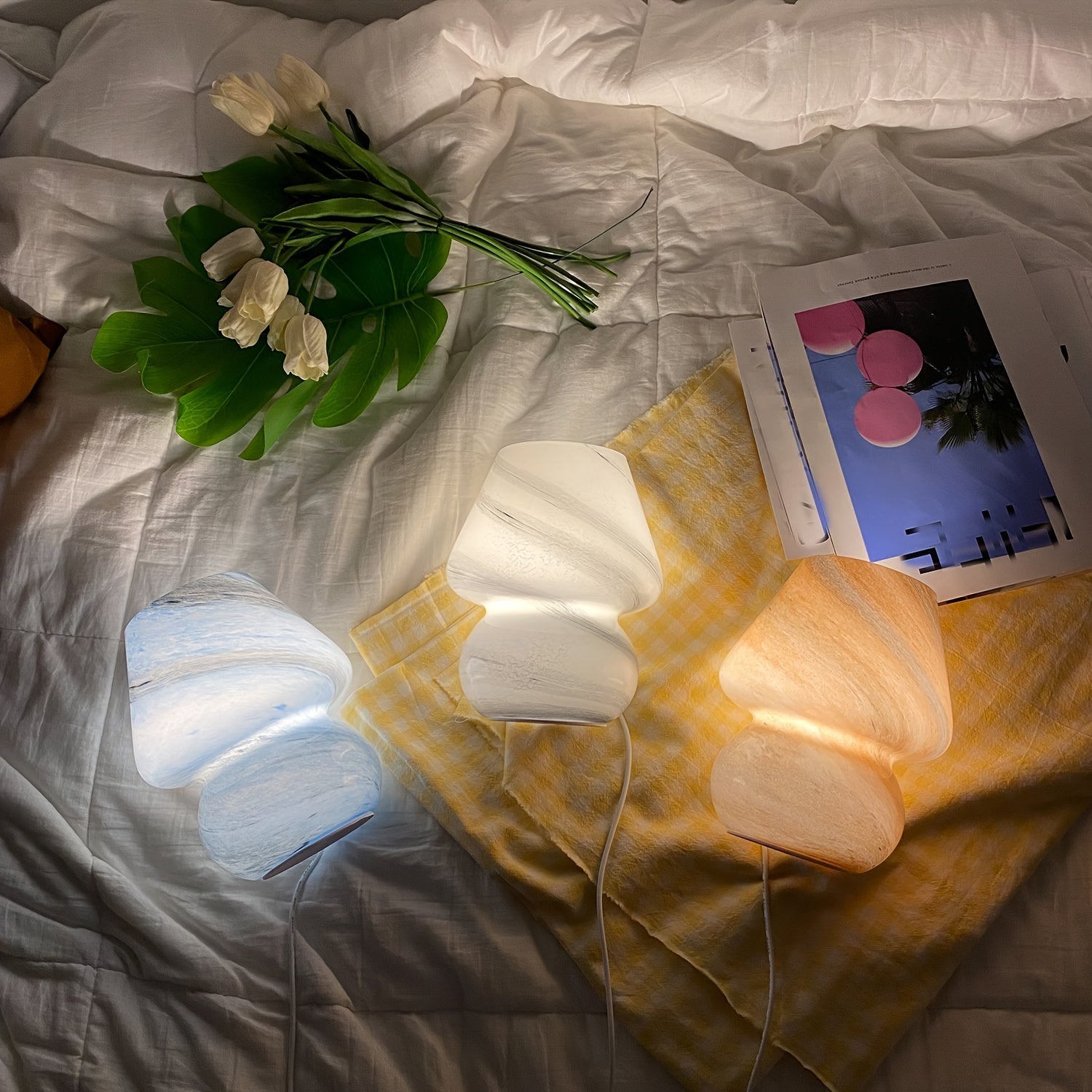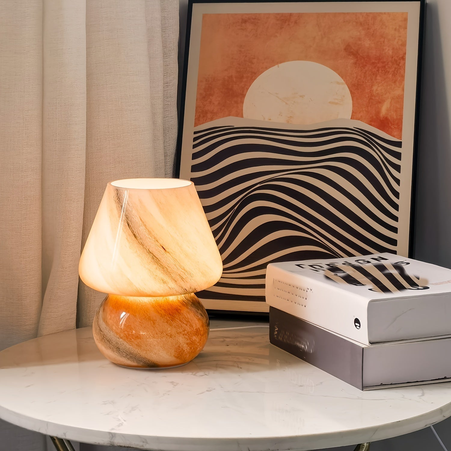מנורת פטריה מזכוכית — תאורת לילה רכה לשידה ולסלון