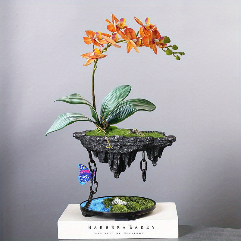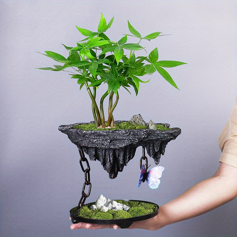 עיצוב אי סלעי “מרחף” עם בסיס מתכתי יציב ומשטח עליון מפלסטיק במראה אבן אפר. מושלם לפלאנופסיס, שרך אספרגוס או סוקולנטים — ומעלה חיוך בכל פעם שמסתכלים.